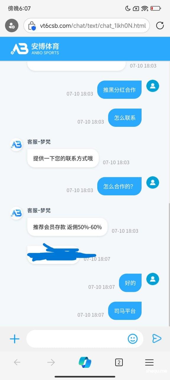 安博体育是个黑台子,不知道从哪弄得我电话号码,给我打电话说体育有包赔活动,我就冲了3万,打了差不多5万流水,提款给我拒绝,想着少提一点试试,结果提1000块都不给出,死妈玩意,这是我给朋友代买球的钱,现在身边的朋友都在找我赔付,台子不给我出款,说我账号有污染风险?头一次听到这么荒唐的理由,污染风险?我听到这个理由我是又想哭,又想笑,后来我试探的问了一下,怎么合作?他们直接不装了,拉人返佣,这不就证实了,妥妥的黑台子么,杀人不见血,吃人不吐骨头,现在的网赌还有真实的吗?大家一定要擦亮自己的眼睛,不要被这种黑台子给当猪杀,黑台网址 https://m.anbo86.com 我现在都觉得我猪都不如,狗都不如,我好后悔,好后悔接触了网赌,我真的不知道该怎么办了,这件事没完,安博平台管理,看到请联系我处理,明天12点之前不联系我处理,我直接报警,我豁出去了,要死一起死,你断了我活命的唯一希望,我也不会让你们好过