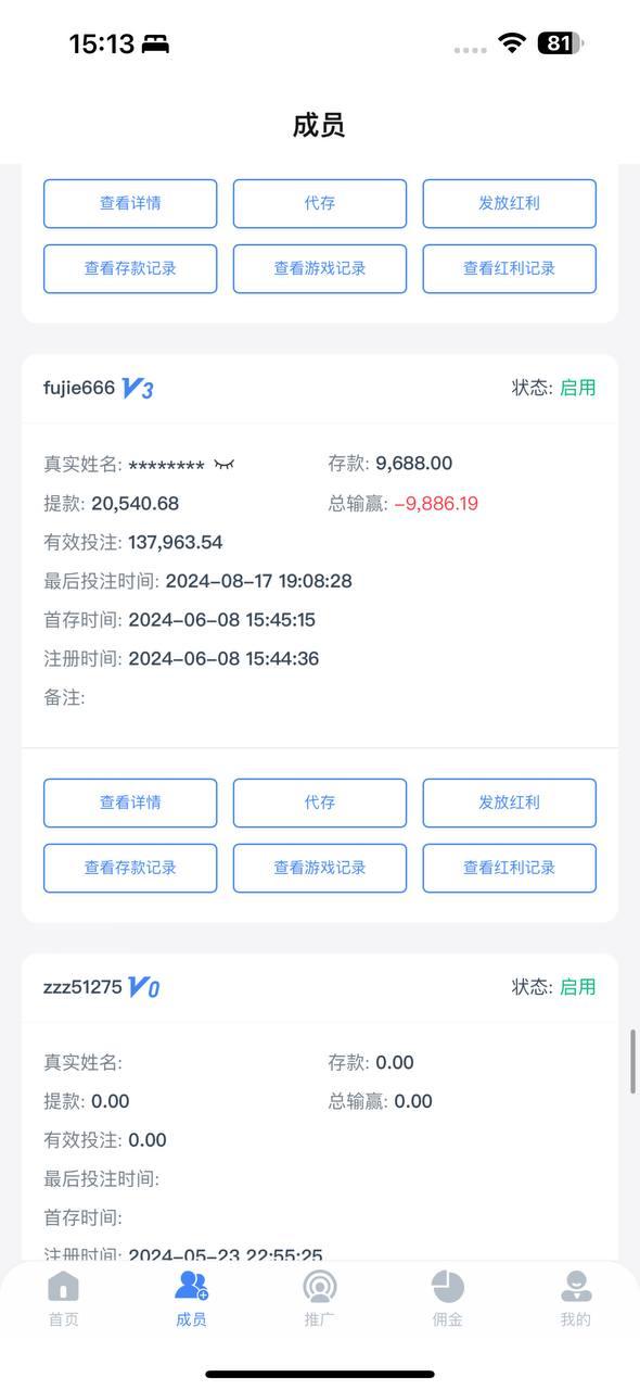 说质量不行,尼玛的眼瞎吧傻逼招商,玩家有输有赢的复存次数,流水也可以,就是诚心卡我是吧,截图会员质量你看,不说55%了给个30%都说得过去,直接一句风控不过,欧洲杯后杀猪看来是真的,难怪你们公司被曝光这么多次,就是钻石十五楼之前叫aoa,现在叫广发/大江两个盘口,员工曝光,会员曝光,代理也曝光,奉劝大家还干这个公司的赶紧跑吧,不然下一个杀猪的就是你?