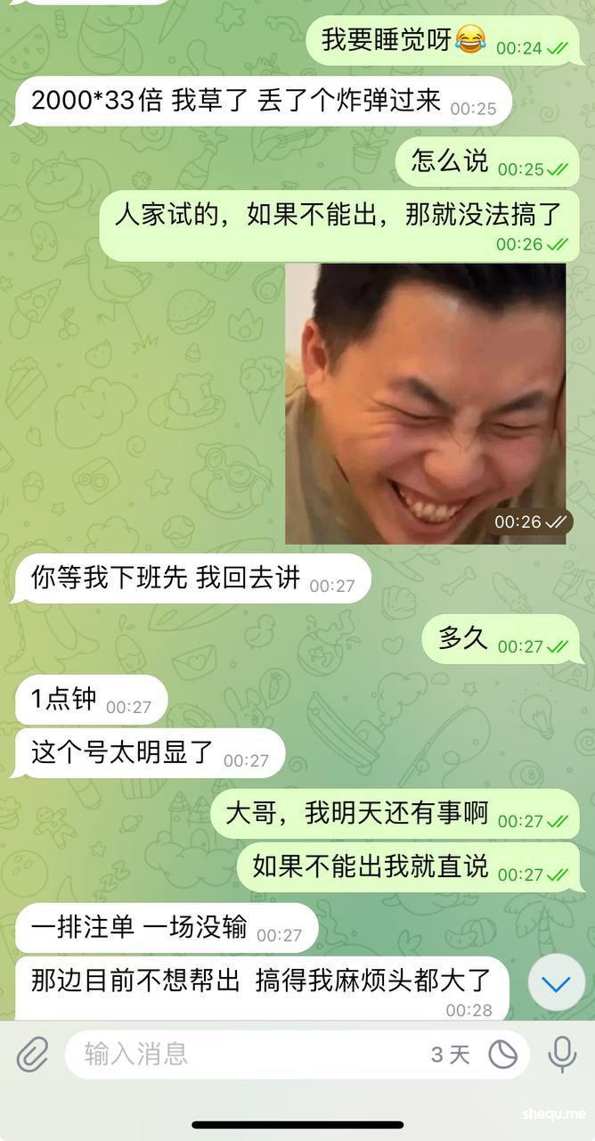 以为是风控组长,再加上我朋友我们也认识很久了,就相信他去注册了一个号,也没有上压。打完了告诉我各种原因出不了款。妈的,逗我玩儿呢?注单、账号要是没有任何问题,找他干吗?又不想担风险,又想分钱?合着跑来白嫖我来了!