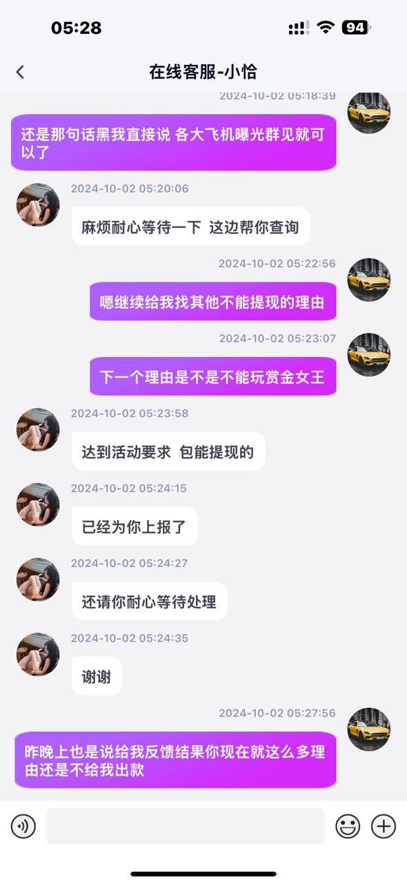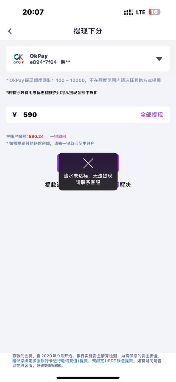 说是首存100+100一杯流水盈利588即可提现。我打到590提现显示差流水,客服说要盈利588,我又打到710提现还是不给出,各种理由不给出款,黑台大家避雷